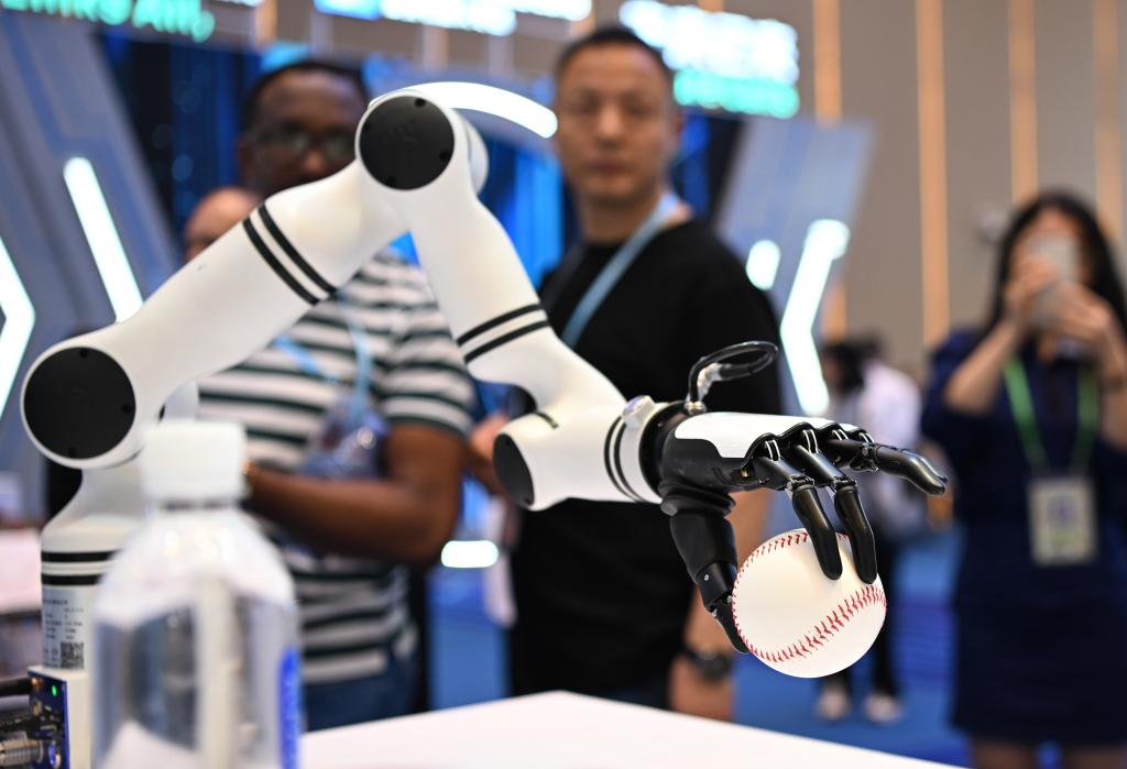 2025年4月15日,在第137屆廣交會服務(wù)機器人專區(qū),機械臂展示靈巧手功能。新華社記者 鄧華 攝