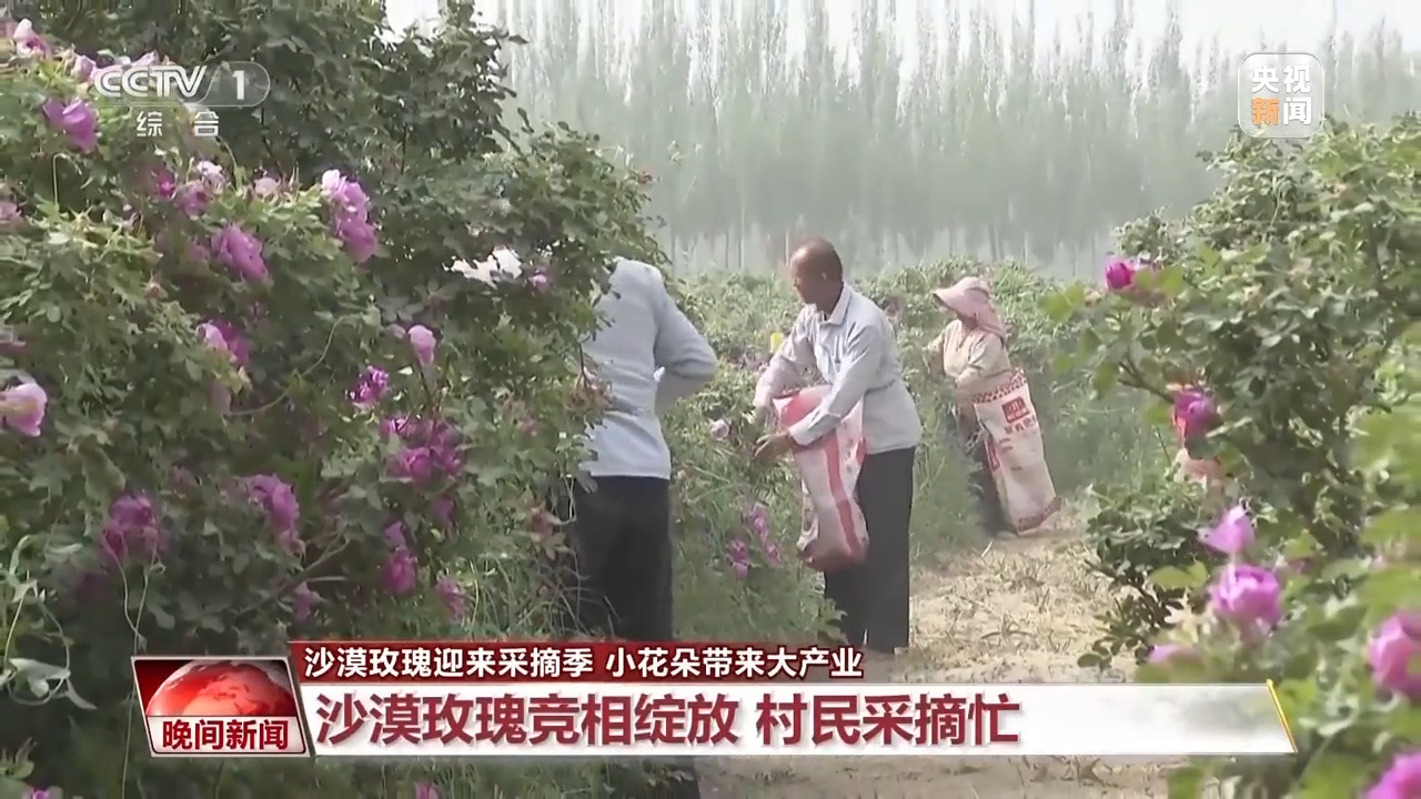 在這里,玫瑰不僅是防風(fēng)固沙的“生態(tài)衛(wèi)士”,也是助農(nóng)增收的“致富花”。眼下,7萬(wàn)余畝玫瑰花迎來(lái)采摘季。