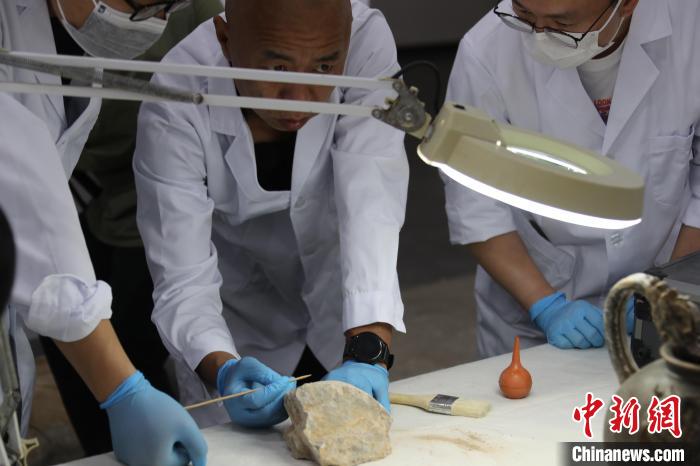 5月20日,河南洛陽,龍門石窟研究院的“文物醫(yī)生”對(duì)文物進(jìn)行修復(fù)。 中新社記者 闞力 攝