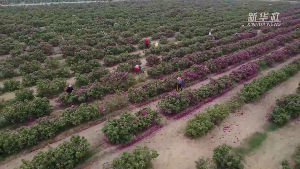 新疆和田地區(qū)于田縣地處塔克拉瑪干沙漠南緣,素有“玫瑰之鄉(xiāng)”的美譽。眼下,于田縣7萬余畝玫瑰花迎來采摘季,朵朵玫瑰競相綻放,空氣中到處彌漫著玫瑰的花香。村民們一大早就忙著采摘玫瑰花。
