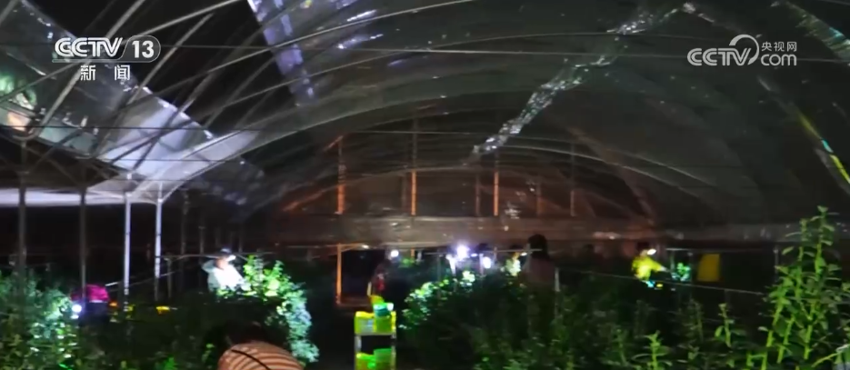 夜幕降臨,趙棚鎮(zhèn)團(tuán)山村的基質(zhì)藍(lán)莓基地卻一片繁忙。記者在基地大棚看到,工人們借著燈光熟練地采摘、打包新鮮藍(lán)莓。
