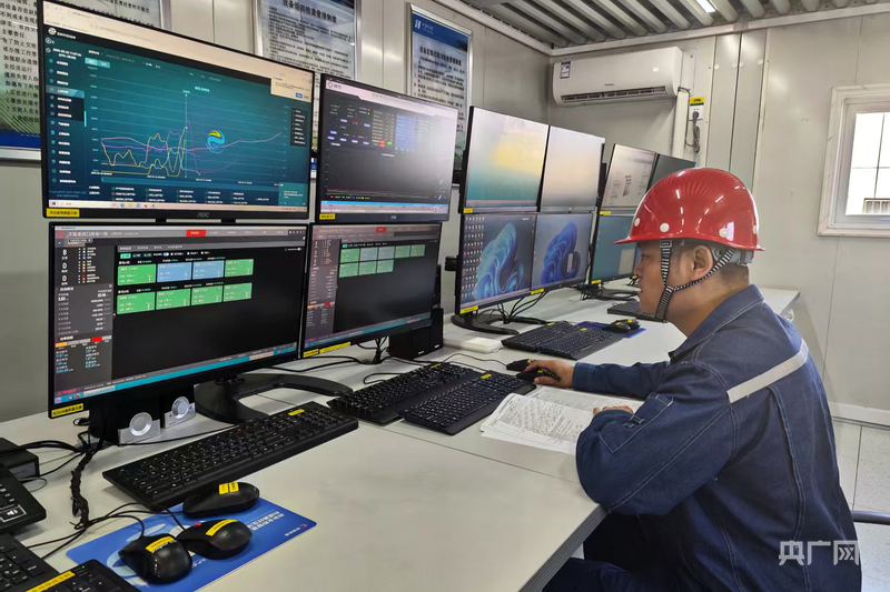 華能塔城地區(qū)托里縣50萬千瓦風(fēng)電項(xiàng)目人員在查看后臺(tái) (央廣網(wǎng)發(fā) 馬曉杉 攝)