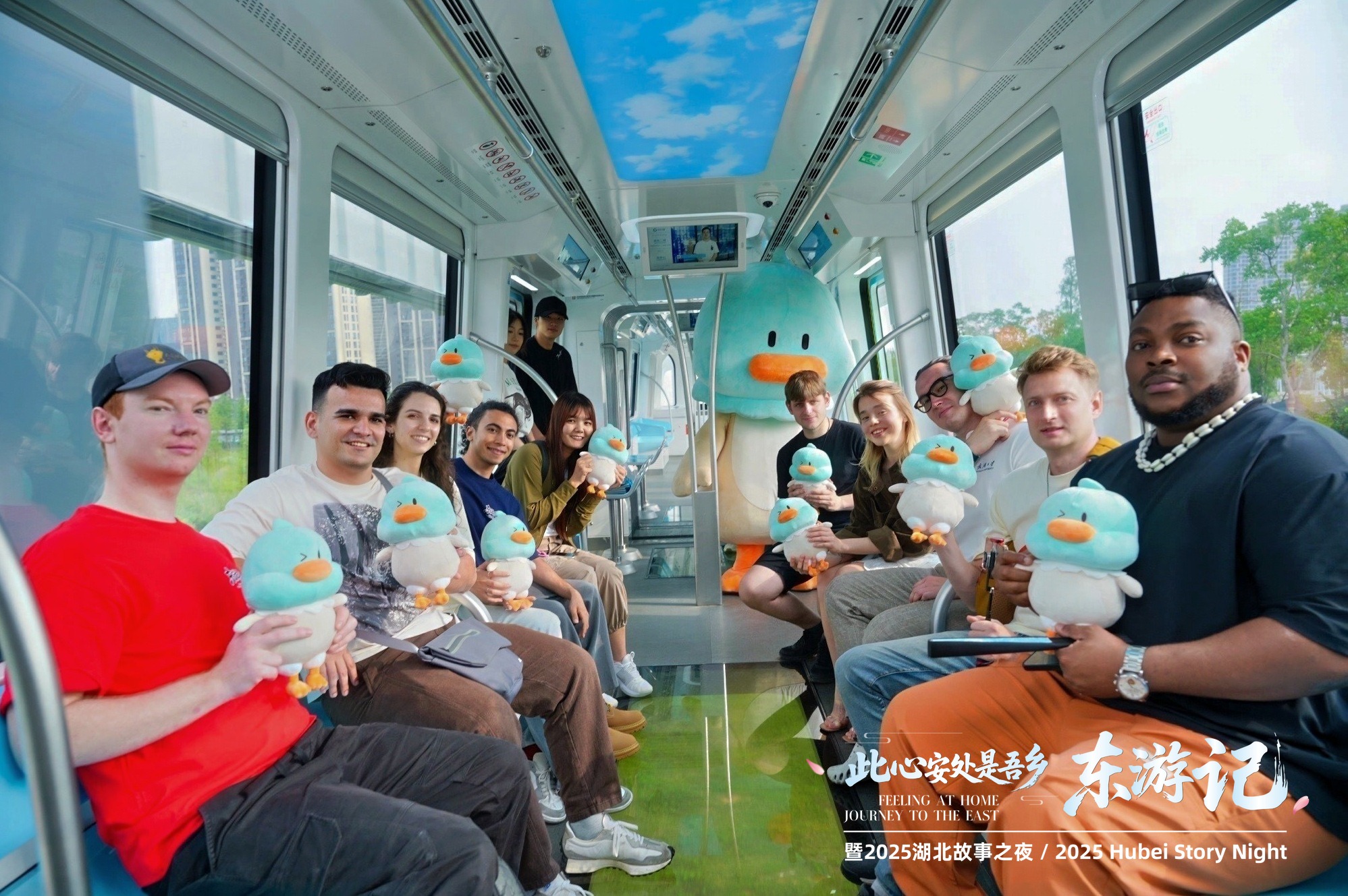 武漢新晉網(wǎng)紅打卡地怎么少得了光谷空軌,在吉祥物青青鴨的帶領(lǐng)下,體驗(yàn)官們踏上了空中交通之旅。270°全景視窗將城市天際線變成流動(dòng)畫卷,無人駕駛系統(tǒng)在空中穿行如科幻大片。這種新奇的乘車體驗(yàn)引得大家連連贊嘆,俄羅斯留學(xué)生可欣興奮的說,“我感覺自己飛起來了,像鳥一樣飄在空中。”