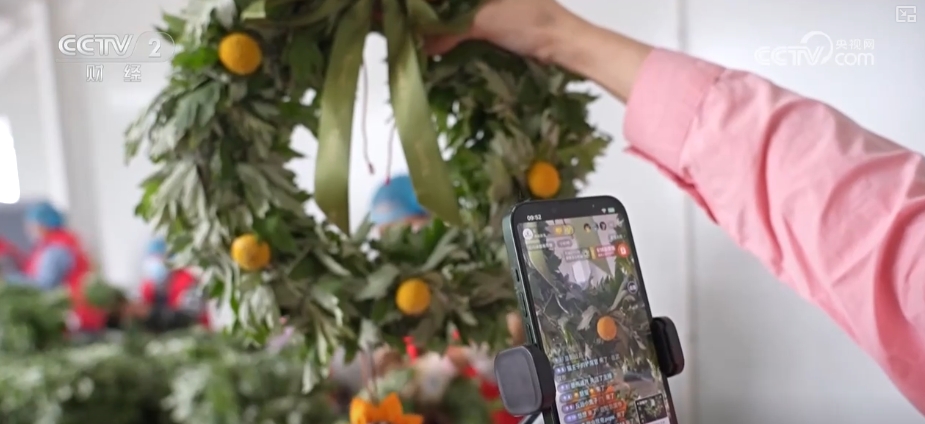 在江蘇新沂的一家艾草企業(yè)直播間里,主播正熱情地介紹新款艾草文創(chuàng)產(chǎn)品,線上訂單源源不斷。一旁的生產(chǎn)線上,工人們也正在熟練地制作艾草花環(huán)。端午臨近,這款艾草花環(huán)日均銷量突破萬(wàn)件。
