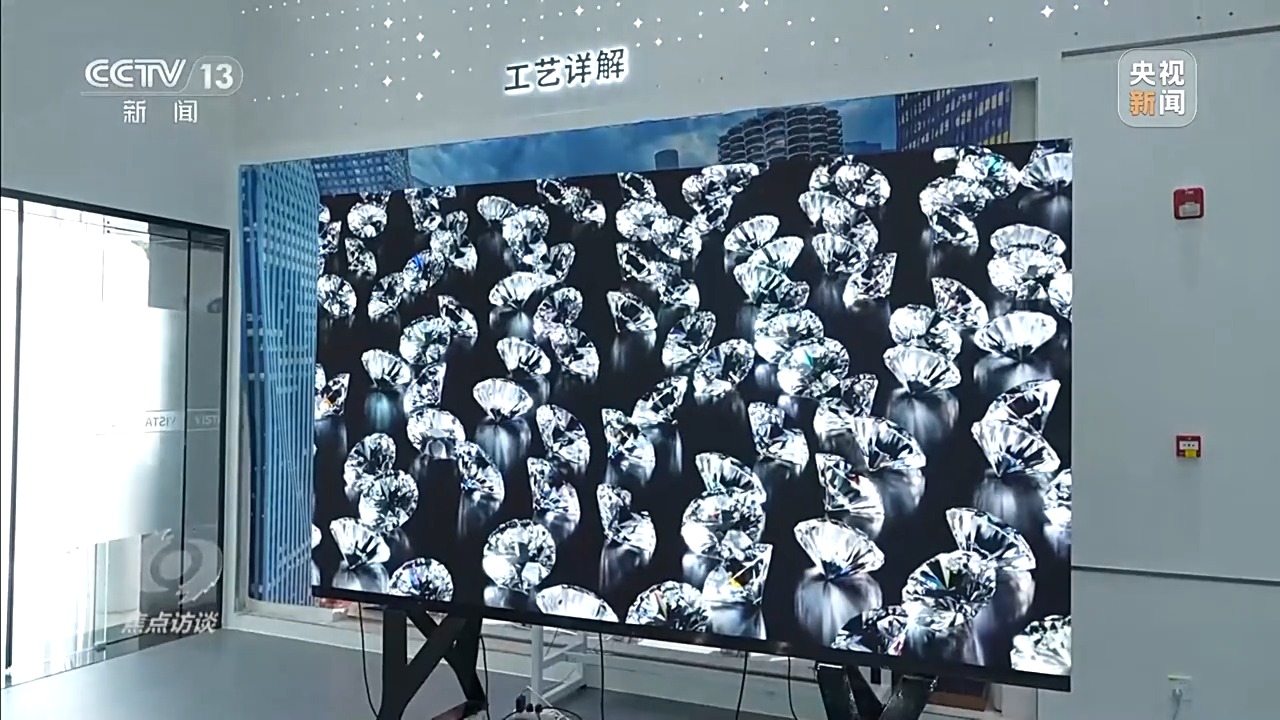 維信諾Micro-LED技術(shù)負(fù)責(zé)人、成都辰顯光電有限公司總經(jīng)理 黃秀頎:這款產(chǎn)品歷經(jīng)了8年的研發(fā)時(shí)間,到現(xiàn)在推出全球最新的135英寸TFT基Micro-LED(顯示屏)。它的特點(diǎn),亮度非常高,而且色彩非常細(xì)膩,還原度很高。但是這塊屏是拼接出來(lái)的,上面總共有2400萬(wàn)顆LED發(fā)光點(diǎn),大的135英寸里面有200片屏,每個(gè)屏還要把它組裝成箱體,這里有25個(gè)箱體。可以根據(jù)客戶(hù)的需求定制大小,只要把箱體拼上去就可以無(wú)限擴(kuò)展,現(xiàn)在拼縫控制的是幾十個(gè)微米量級(jí),大概就是頭發(fā)絲直徑的五分之一。