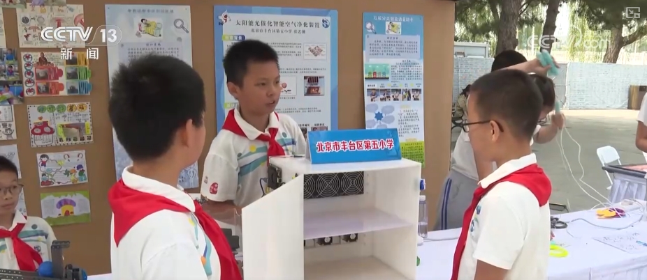 “科技強(qiáng)國”小學(xué)生社團(tuán)風(fēng)采展示活動(dòng)也在現(xiàn)場(chǎng)同步開展。來自北京各個(gè)學(xué)校的少先隊(duì)科技社團(tuán)齊聚一堂,孩子們興致盎然地分享自己設(shè)計(jì)拼裝的投球機(jī)器人、巡防機(jī)器人、智能消毒碗柜等精彩紛呈的科技成果。