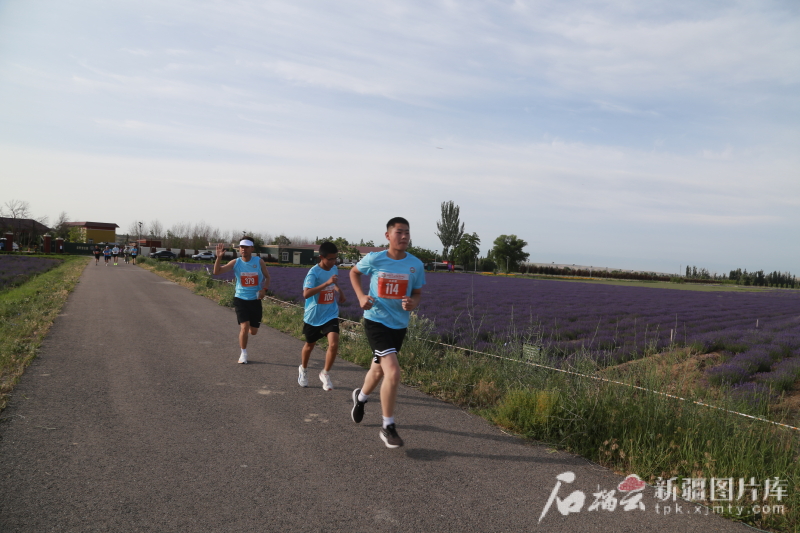 5月31日,霍城縣“2025蘇韻伊情·霞路相逢(霞2·芳香霍城)商學(xué)院越野接力賽”開跑。圖為參賽選手跑過一片薰衣草園。石榴云/新疆日報記者 宋衛(wèi)國 攝