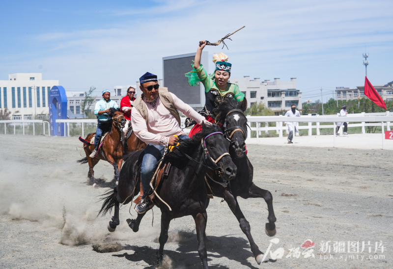 5月31日,中國·新疆第五屆駱駝產(chǎn)業(yè)展暨全疆賽馬大會在木壘哈薩克自治縣激情啟幕?;顒蝇F(xiàn)場在進行“姑娘追”表演。常誼誼 攝