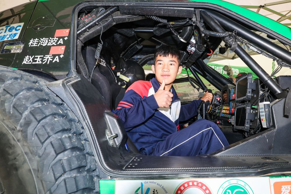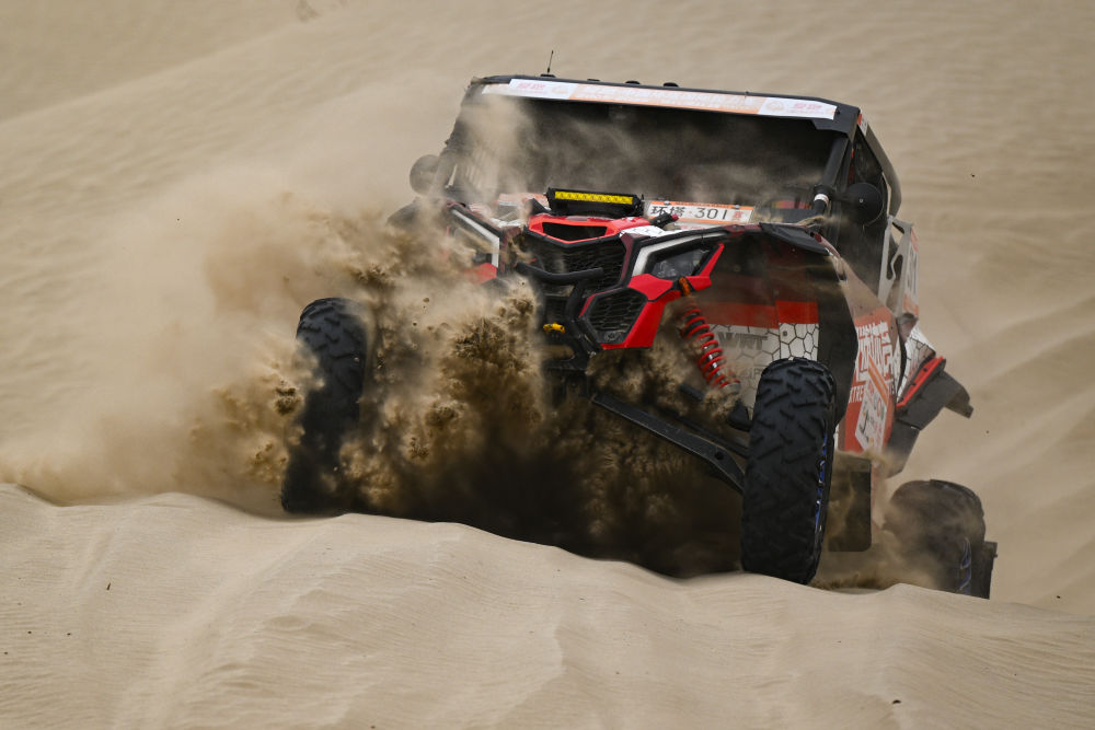 2025年5月31日,極道體育黑熊輪胎車隊車手趙善鵬、領(lǐng)航員郭峰在比賽中。新華社記者 辛悅衛(wèi) 攝
