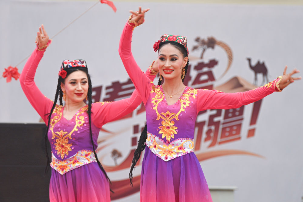 2025年5月30日,2025中國環(huán)塔國際拉力賽新疆喀什地區(qū)麥蓋提賽段歡迎晚會上的歌舞表演。新華社發(fā)(環(huán)塔組委會供圖)