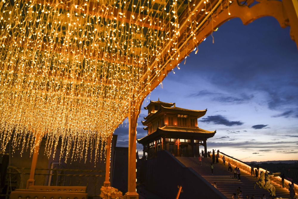 人們在新疆喀什市盤橐城景區(qū)內(nèi)游玩(2023年6月14日攝)。新華社記者 胡虎虎 攝
