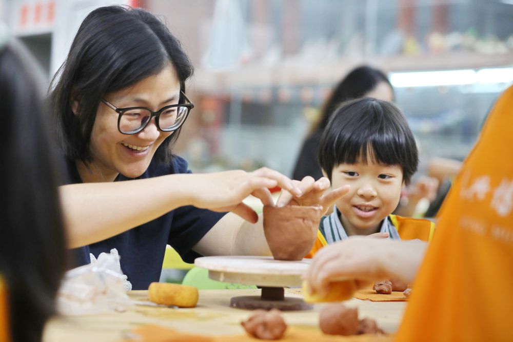 圖為在浙江省嘉興博物館,南湖實驗學校萬興校區(qū)一年級小學生和家長一起參加“泥塑悟非遺,親子迎端午”泥塑制作活動。新華社發(fā)(金鵬 攝)