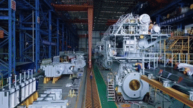記者在位于青島西海岸新區(qū)的中船發(fā)動(dòng)機(jī)生產(chǎn)車(chē)間內(nèi)看到,一臺(tái)四五層樓高的船舶發(fā)動(dòng)機(jī)正在緊張安裝當(dāng)中。