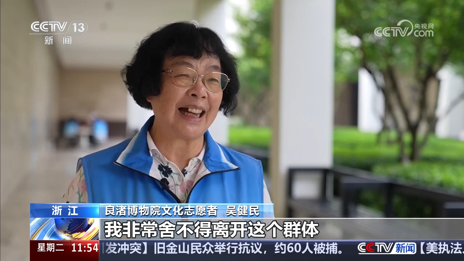 良渚博物院文化志愿者 吳健民:博物館就像一個(gè)老年大學(xué)一樣,大家在這個(gè)平臺(tái)上進(jìn)行交流,互相學(xué)習(xí),非常好的一種氛圍。只要我身體允許的情況下,我非常舍不得離開這個(gè)群體。