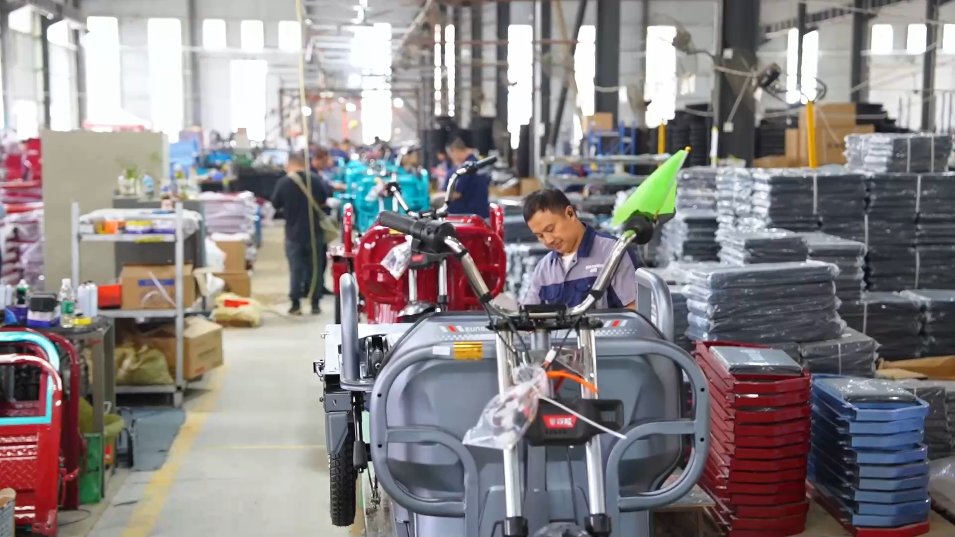 在四川眉山天府新區(qū),記者在雙勝新能源車業(yè)有限責任公司看到,工人們正緊鑼密鼓組裝一批即將發(fā)往非洲、東南亞的電動三輪車。