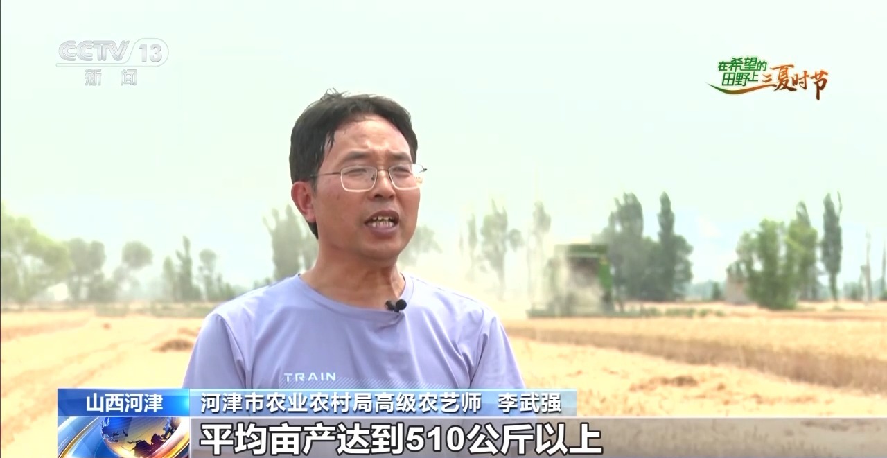 河津市農(nóng)業(yè)農(nóng)村局高級農(nóng)藝師 李武強(qiáng):示范基地的小麥估計一周左右全部收完,平均畝產(chǎn)達(dá)到510公斤以上,較去年增產(chǎn)8%。下一步,將持續(xù)加大實用技術(shù)應(yīng)用,努力實現(xiàn)‘收到手’到‘收得好’轉(zhuǎn)變。
