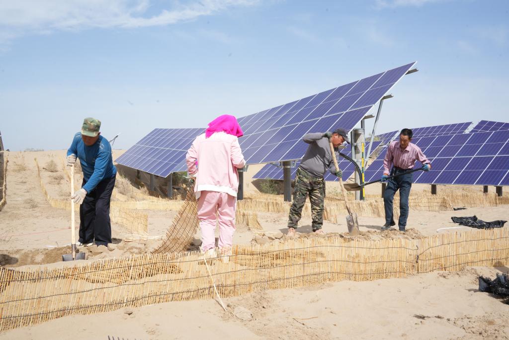 據(jù)介紹,該項(xiàng)目預(yù)計(jì)于6月底具備并網(wǎng)發(fā)電條件,投產(chǎn)運(yùn)行后年發(fā)電量達(dá)3.6億千瓦時(shí),配套治理沙地2.4萬畝。新華林場(chǎng)場(chǎng)長賀鑫說:“在開展‘三北’工程攻堅(jiān)戰(zhàn)以來,我們采取‘以工代賑’形式,組織周邊村民參與光伏項(xiàng)目建設(shè)、林草種植等全流程作業(yè),參與農(nóng)民的人數(shù)超過2000人?!?/p>