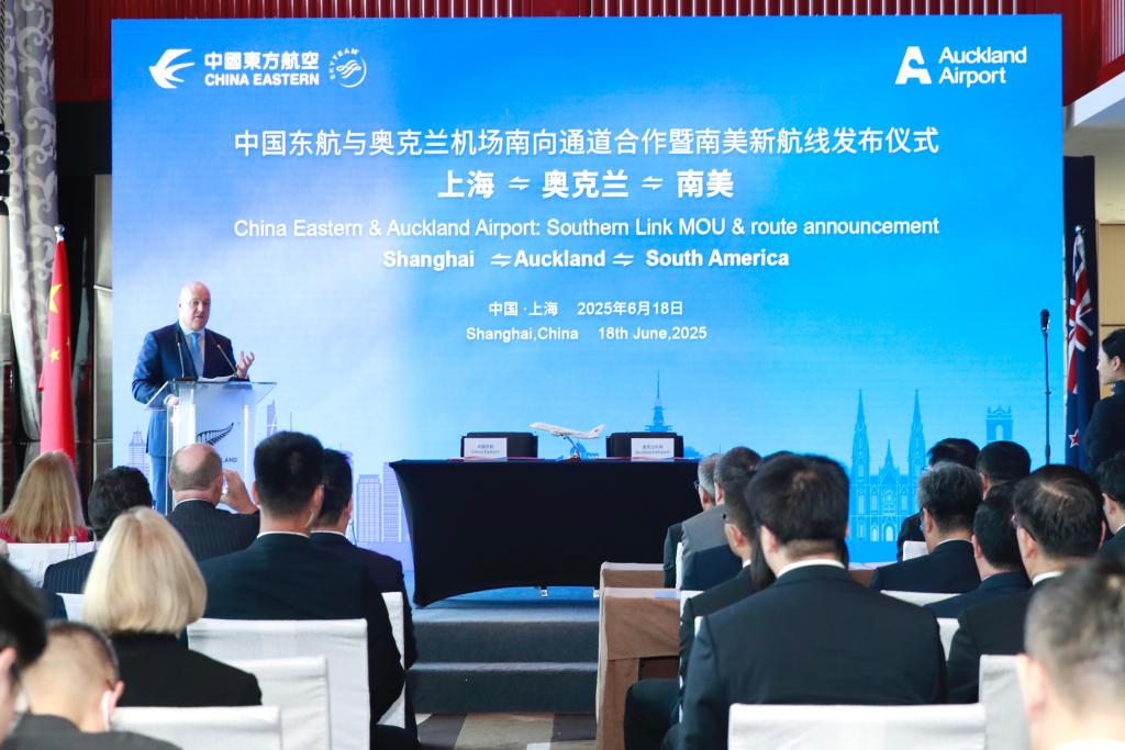 在18日此間舉行的相關(guān)儀式上,中國東方航空集團(tuán)有限公司宣布,將于今年年底前開通上海經(jīng)新西蘭奧克蘭至阿根廷首都布宜諾斯艾利斯的“南向通道”首條航線。新西蘭方面宣布,將給予通過這條“南向通道”航線中轉(zhuǎn)的中國旅客免簽證的便利服務(wù),并進(jìn)一步提升奧克蘭機(jī)場的基礎(chǔ)設(shè)施條件和服務(wù)能力。