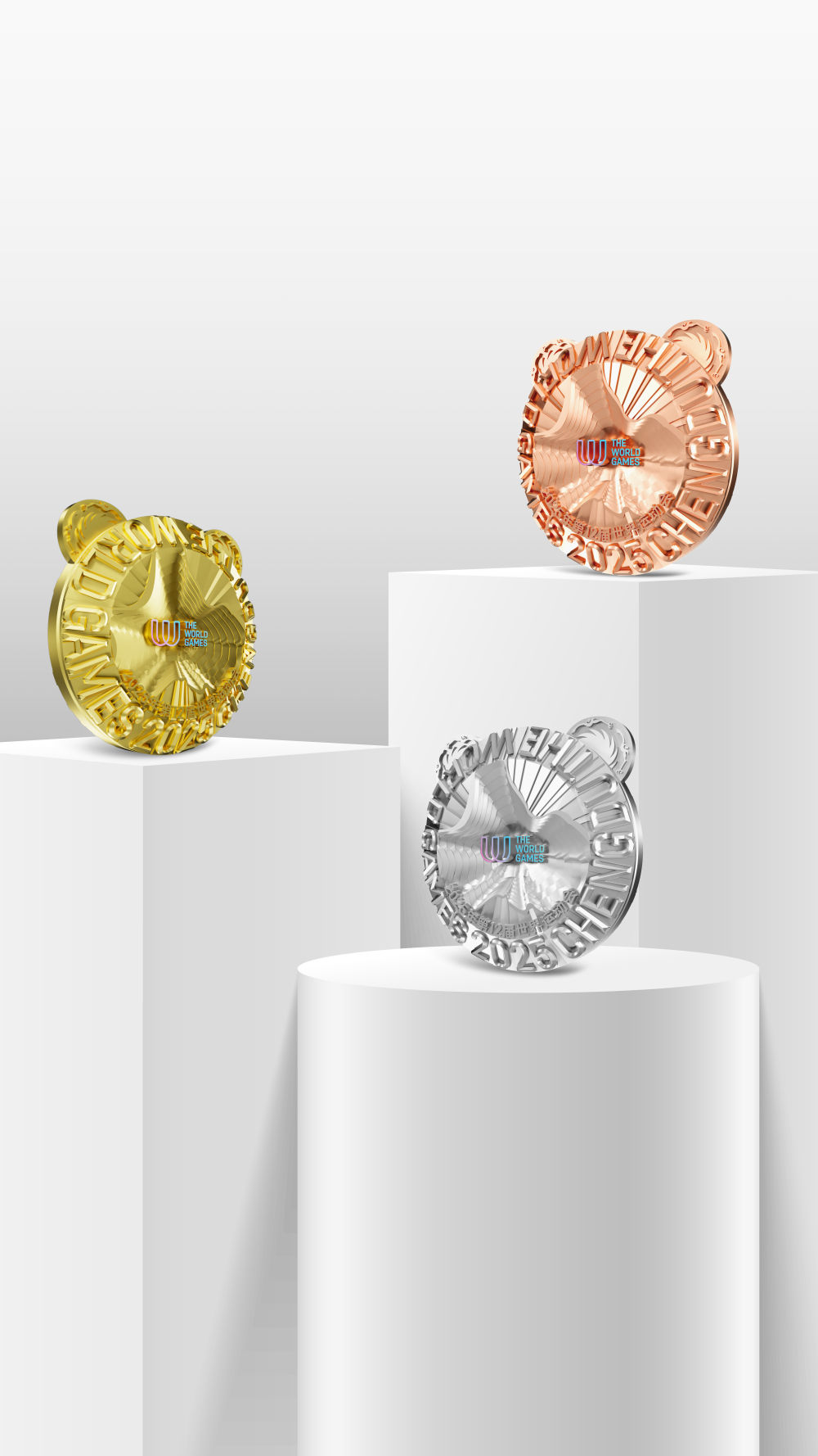 圖為成都世運(yùn)會(huì)金、銀、銅牌效果圖。新華社發(fā)(成都世運(yùn)會(huì)執(zhí)委會(huì)供圖)