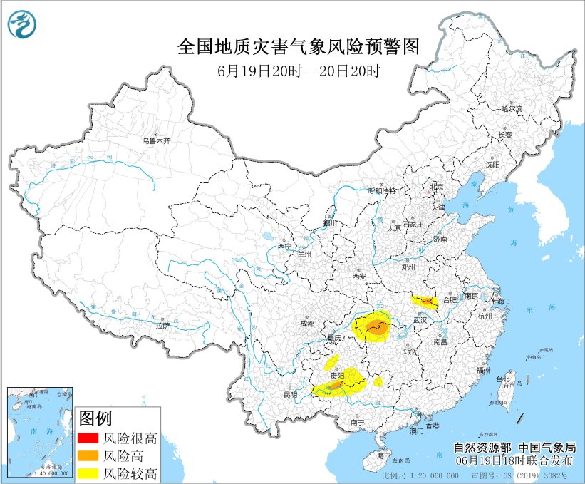 自然資源部與中國氣象局同一時間聯(lián)合發(fā)布地質(zhì)災害氣象風險預警,預計19日20時至20日20時,安徽西部、河南南部、湖北東北部和西南部、湖南西北部、廣西北部、重慶東部、貴州西部和南部、云南東部等地部分地區(qū)發(fā)生地質(zhì)災害的氣象風險較高(黃色預警)。其中,安徽西部、河南南部、湖北東北部和西南部、湖南西北部、廣西北部、貴州南部等地部分地區(qū)發(fā)生地質(zhì)災害的氣象風險高(橙色預警),需做好地質(zhì)災害防御工作。