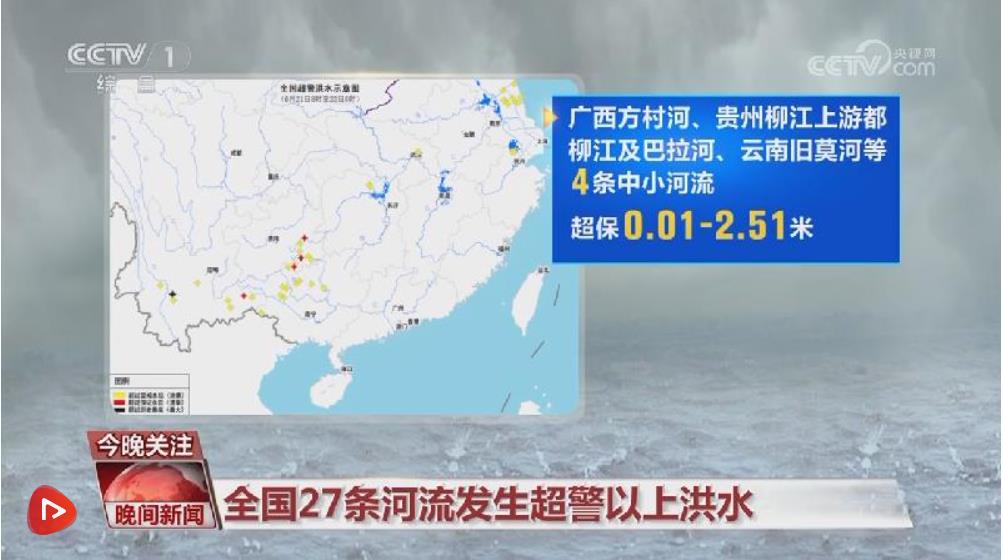 水利部消息,6月21日8時至22日8時,受降雨影響,廣西柳江干流及支流方村河、貴州沅江支流巴拉河、云南右江支流舊莫河及瀾滄江支流勐統(tǒng)河等27條河流發(fā)生超警以上洪水,最大超警幅度3.71米,其中廣西方村河、貴州柳江上游都柳江及巴拉河、云南舊莫河等4條中小河流超保0.01~2.51米,云南勐統(tǒng)河發(fā)生1979年以來最大洪水。此外,江蘇里下河地區(qū)新增8站水位超警0.02~0.51米。