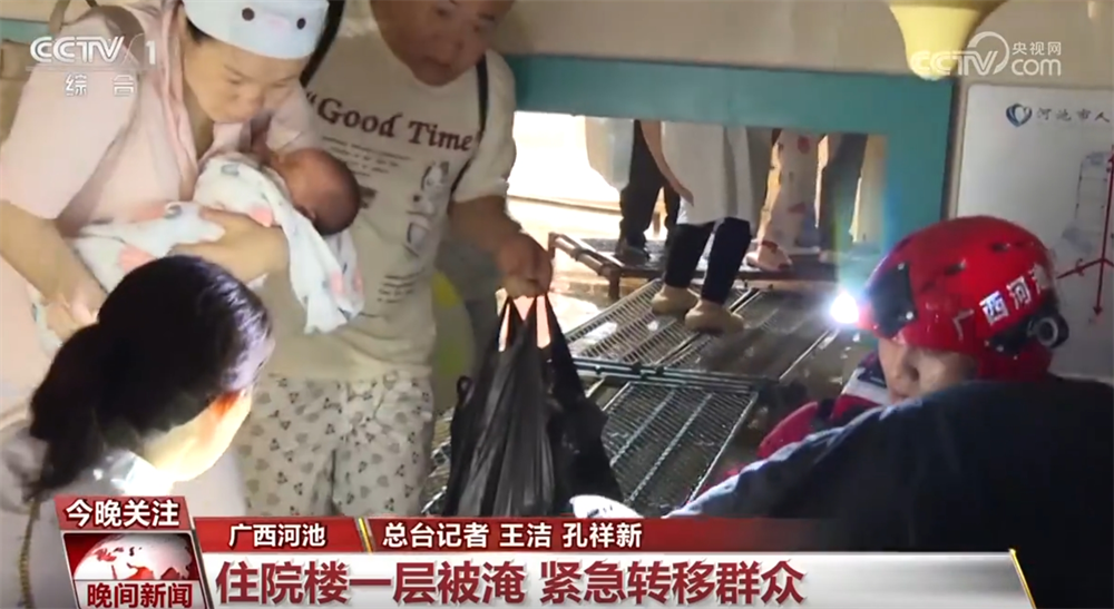 這兩天,廣西河池多地遭遇強(qiáng)降雨天氣。河池市人民醫(yī)院住院部大樓一層出現(xiàn)嚴(yán)重積水,幾百名住院的病人和陪護(hù)家屬需要轉(zhuǎn)移,救援人員迅速行動起來。