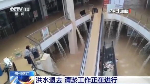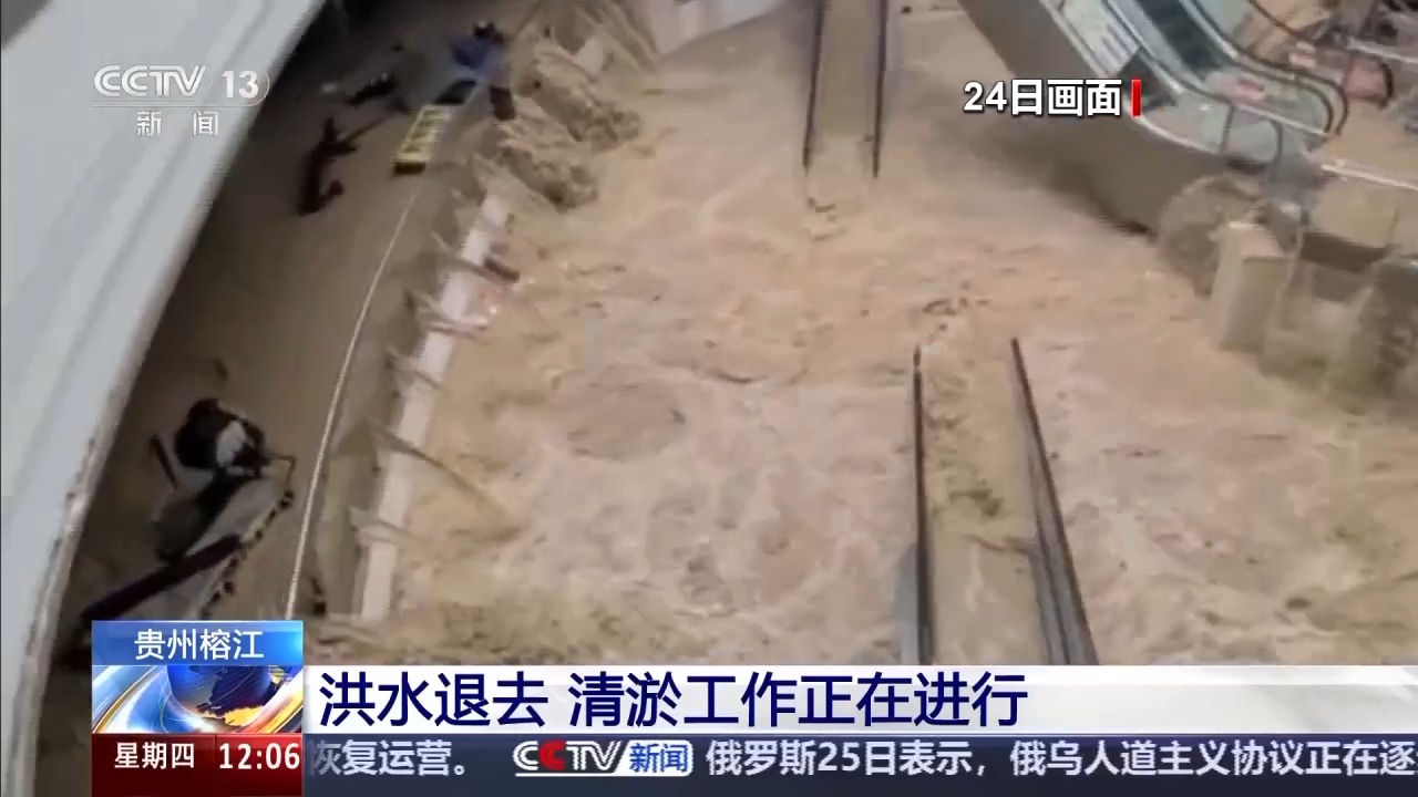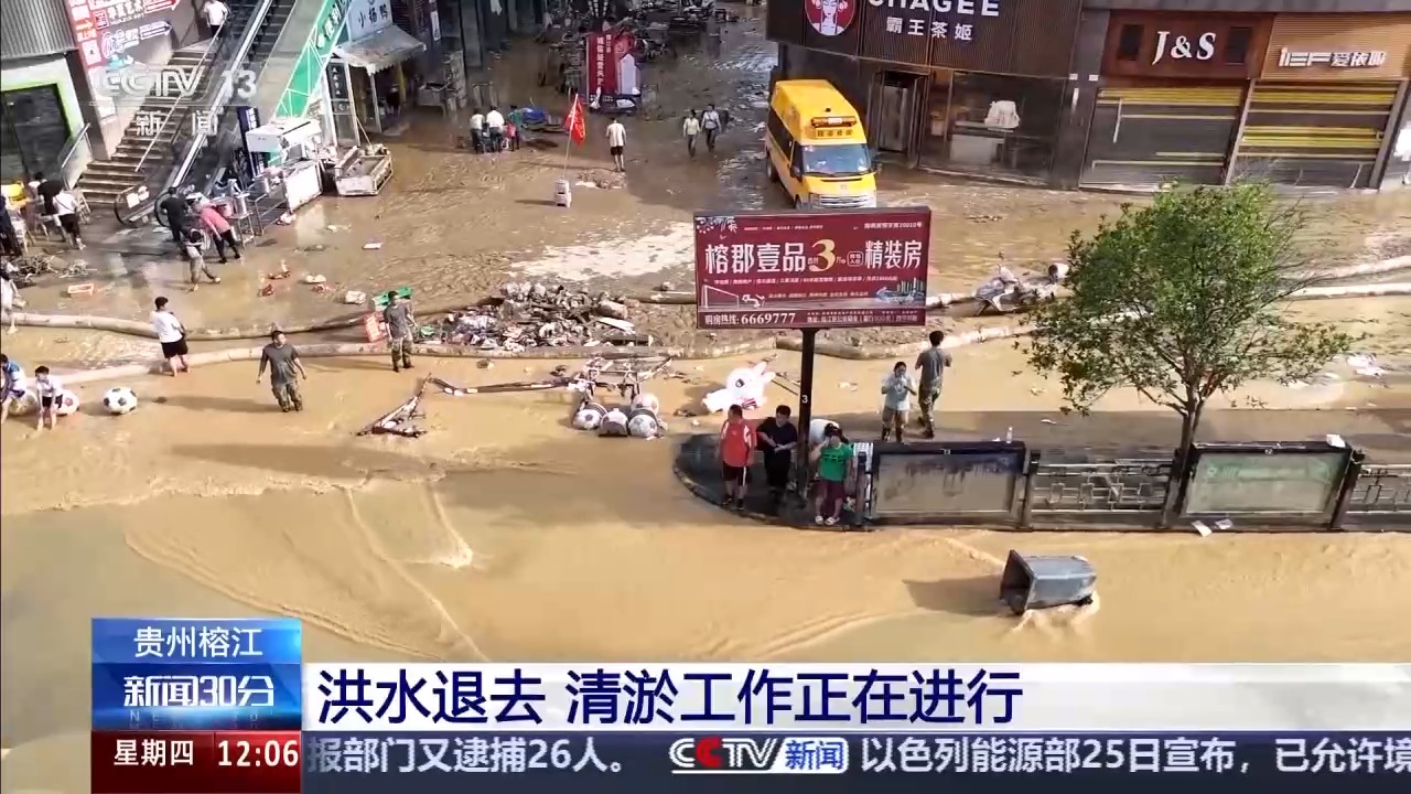 最近,貴州黔東南州遭遇持續(xù)強(qiáng)降雨,其中,榕江、從江兩縣24日先后經(jīng)歷洪峰過境,縣城多地被淹,受災(zāi)嚴(yán)重。隨著降雨暫停,洪水水位明顯下降,清淤工作正在進(jìn)行。