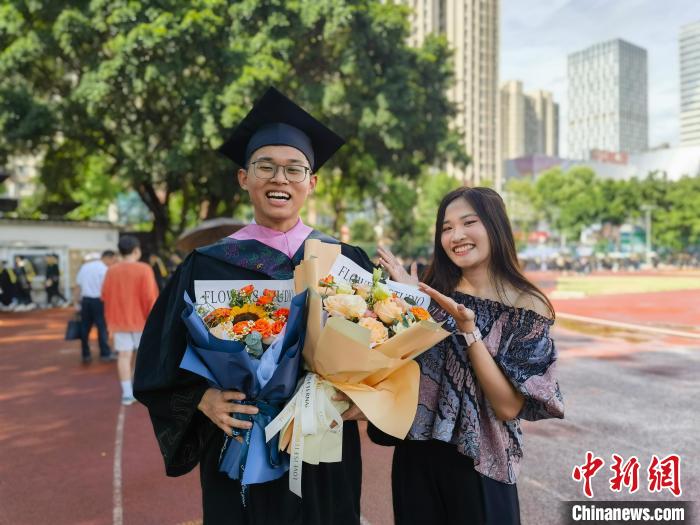 6月27日,留學(xué)生馬麗文在畢業(yè)典禮上與從老撾前來(lái)的親人合影留念。(受訪者供圖)