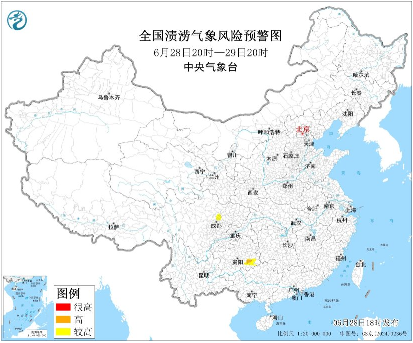 預(yù)計(jì),6月28日20時(shí)至29日20時(shí),四川北部、貴州東南部、甘肅南部等地部分地區(qū)發(fā)生山洪災(zāi)害可能性較大(黃色預(yù)警),局地發(fā)生山洪災(zāi)害可能性大(橙色預(yù)警)。其他地區(qū)也可能因局地短歷時(shí)強(qiáng)降水引發(fā)山洪災(zāi)害,請(qǐng)各地注意做好實(shí)時(shí)監(jiān)測(cè)、防汛預(yù)警和轉(zhuǎn)移避險(xiǎn)等防范工作。