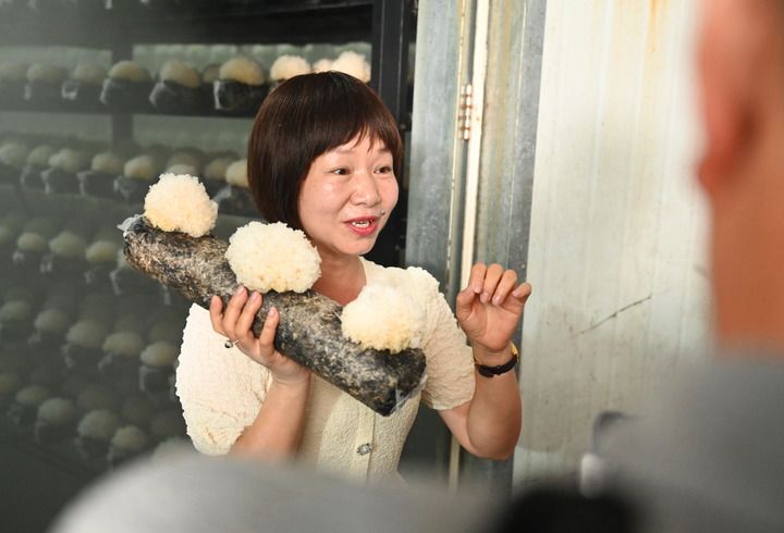 6月26日,寧德晟農(nóng)農(nóng)業(yè)開(kāi)發(fā)有限公司總經(jīng)理張家巧在介紹智慧菇房生長(zhǎng)的古田銀耳。
