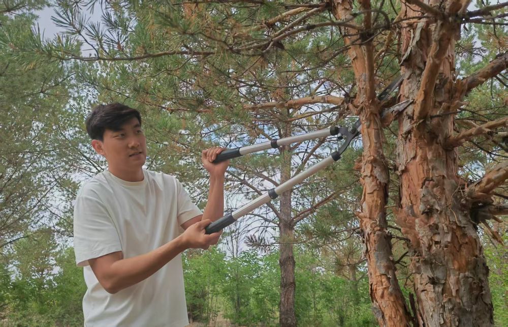 2017年,在爺爺?shù)膸ьI(lǐng)下,石健陽正式投身植綠事業(yè)。“過去沙害嚴(yán)重,老一輩治沙人最迫切的是要定住風(fēng)沙,讓地面先綠起來,所以當(dāng)時(shí)的樹種主要是生長快的楊樹?!笔£栒f,“幾十年過去,楊樹林老化嚴(yán)重,出現(xiàn)大面積枯死的情況。我們現(xiàn)在陸續(xù)對(duì)老化的林地進(jìn)行樹種更換,補(bǔ)種四季常青、生命周期更長的樟子松,目前已經(jīng)補(bǔ)種了5萬畝?!?/p>
