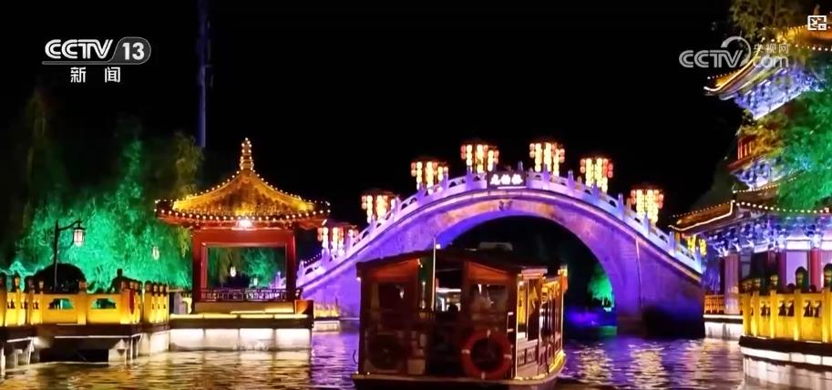 夜幕降臨,游客在綿延十公里的游船線路上就能觀賞宋詞樂舞、古風(fēng)舞蹈、雜技等多種表演。夜游項目讓游客從“到此一游”轉(zhuǎn)變?yōu)椤白∠聛?、細細品”,超過32%的游客選擇在開封過夜。