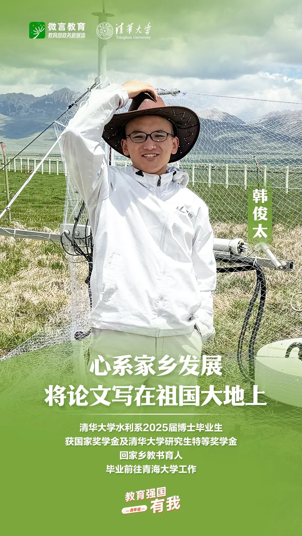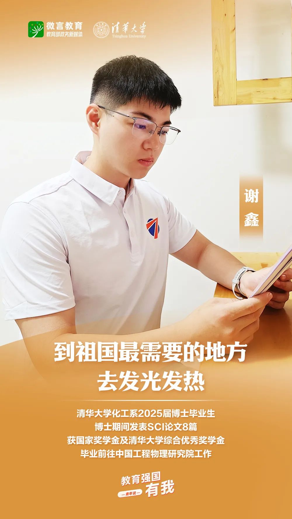 習(xí)近平總書記強(qiáng)調(diào),希望廣大青年堅(jiān)定理想信念,厚植家國(guó)情懷,練就過硬本領(lǐng),發(fā)揚(yáng)奮斗精神,到祖國(guó)和人民最需要的地方發(fā)光發(fā)熱,為中國(guó)式現(xiàn)代化建設(shè)貢獻(xiàn)青春力量。教育強(qiáng)國(guó)建設(shè),青年何為?教育部政務(wù)新媒體推出“教育強(qiáng)國(guó),有我!”網(wǎng)絡(luò)主題宣傳活動(dòng)之“青年說(報(bào)國(guó)篇)”系列,展現(xiàn)青年學(xué)子將個(gè)人理想融入國(guó)家發(fā)展的青春擔(dān)當(dāng)。今天,跟教育小微通過1個(gè)視頻和1組海報(bào),一起來看清華大學(xué)學(xué)子的畢業(yè)選擇——