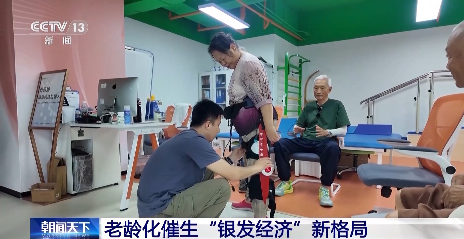 在這個外骨骼機器人康復訓練中心,記者看到幾位老年志愿者正在測試一款助力行走的外骨骼機器人。