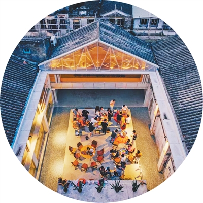 2015年,李繼津和合伙人看上了塘口舊墟兩處建筑,“原先是舊糧倉(cāng)周邊的五金廠、鐘表廠,雖然建筑很舊,但很有設(shè)計(jì)感,而且舊墟與周?chē)拇遄泳嚯x很近,有做社區(qū)改造的潛力?!闭f(shuō)干就干,舊工廠逐漸被改造為時(shí)尚的青年社區(qū)空間——“塘口空間”,餐廳、青年旅舍、劇場(chǎng)、活動(dòng)空間等一應(yīng)俱全,舊工廠里原有的一些制造機(jī)械作為歷史記憶的“載體”也被保留下來(lái)?!敖ㄖ荒苊撾x鄉(xiāng)村?!崩罾^津說(shuō)。