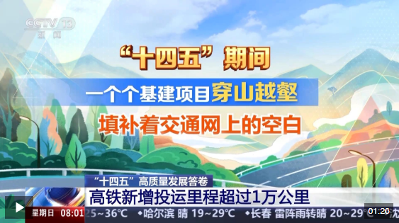 “十四五”時(shí)期,中國(guó)基建不斷跑出向新力和加速度,高鐵新增投運(yùn)里程超過(guò)1萬(wàn)公里,每10個(gè)行政村就有9個(gè)通上了5G。
