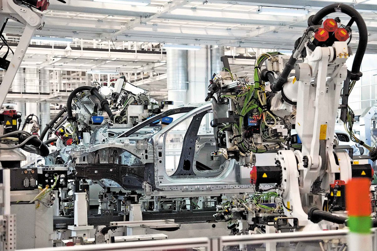 一輛汽車正在北京一條自動化生產(chǎn)線上進行組裝。圖片來源:新華社
