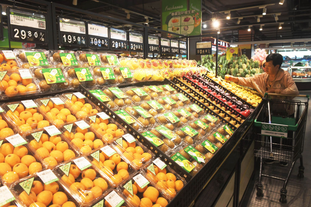 6月9日,顧客在河北省石家莊新樂市一家超市選購(gòu)水果。新華社發(fā)(賈敏杰攝)