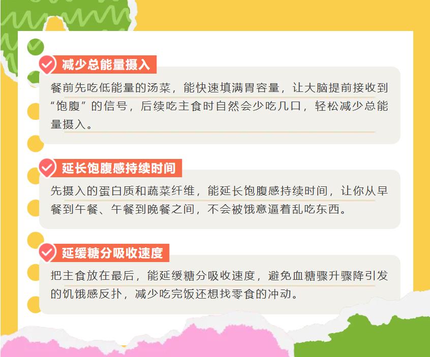 你知道嗎?吃飯時(shí)先吃什么、后吃什么,其實(shí)對(duì)健康影響不小!合理的飲食順序,能幫助我們更好地消化吸收、穩(wěn)定血糖,還能控制體重。