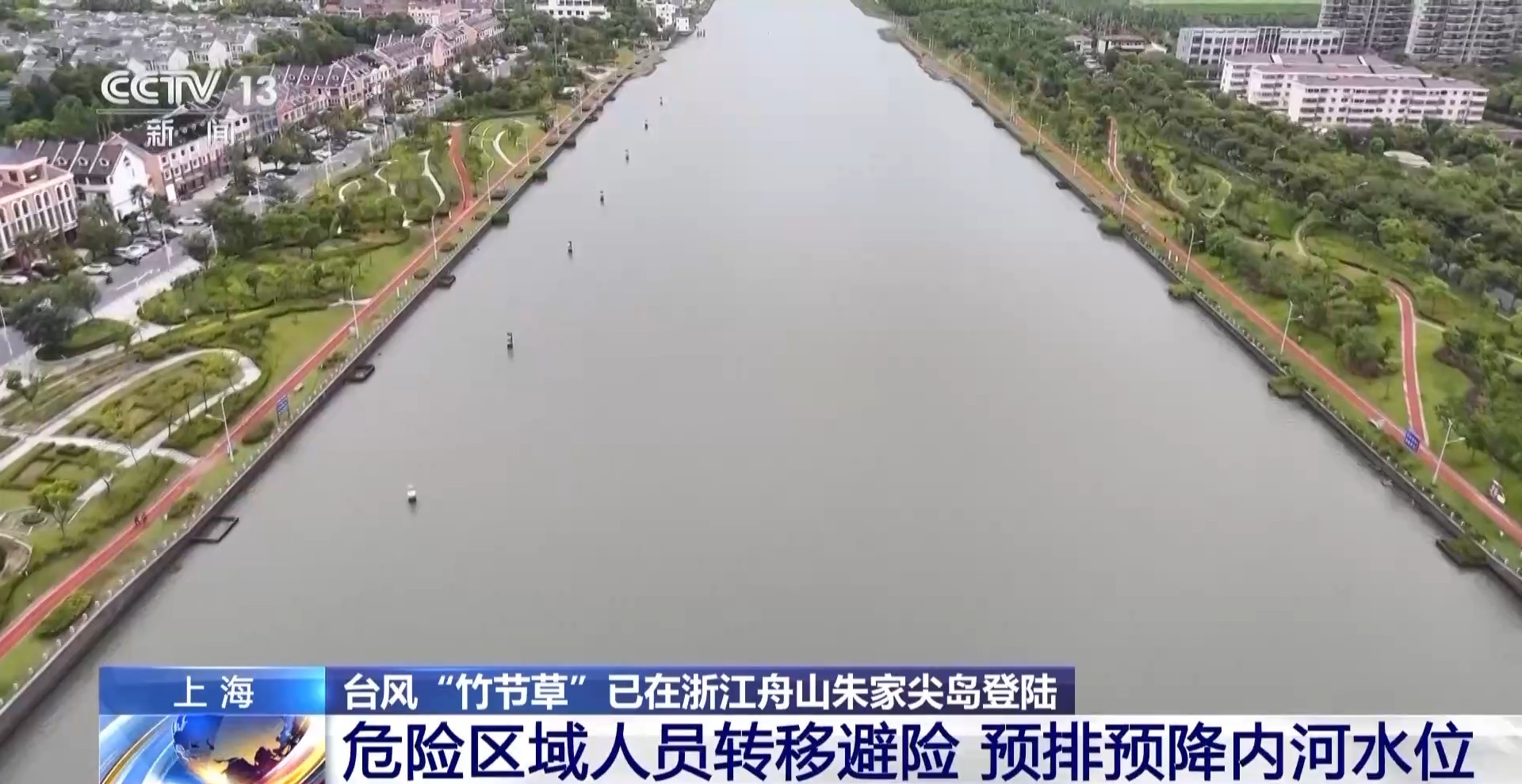 總臺記者 張寄予:為應(yīng)對臺風(fēng)“竹節(jié)草”,上海市奉賢區(qū)金匯港南閘會進(jìn)行開閘排水工作。這里一邊是內(nèi)河,一邊是杭州灣,當(dāng)海水落潮的時候,海水水平面低于內(nèi)河水平面時,就會開啟閘口,利用水位落差自然排水。