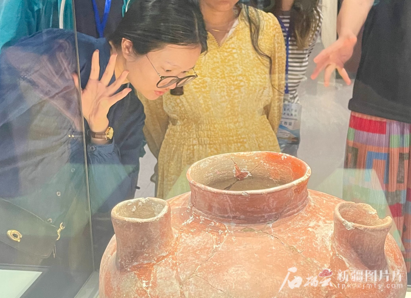 在塔城紅樓博物館,大家在石器時(shí)代文物、歷代器具等展品前,細(xì)細(xì)聆聽(tīng)講解員講述塔城的歷史脈絡(luò)。