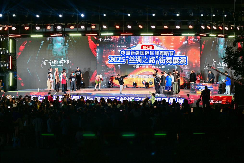 8月3日晚,在第七屆中國新疆國際民族舞蹈節(jié)2025“絲綢之路”街舞展演的舞臺(tái)上,國內(nèi)外舞者相聚克拉瑪依市同臺(tái)亮相,用街舞語言講述追夢的青春故事。