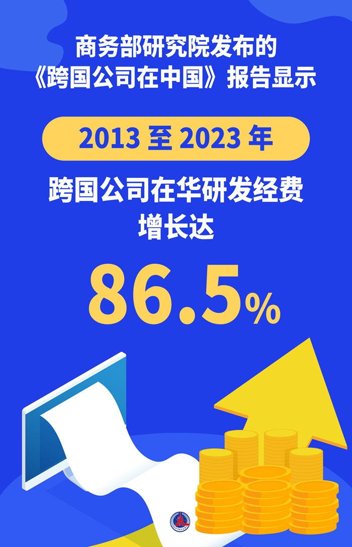 商務(wù)部研究院發(fā)布的《跨國公司在中國》報(bào)告顯示,2013至2023年,跨國公司在華研發(fā)經(jīng)費(fèi)增長達(dá)86.5%??鐕九c中國的投資合作已由“市場導(dǎo)向型”“成本導(dǎo)向型”延伸至“創(chuàng)新驅(qū)動(dòng)型”。