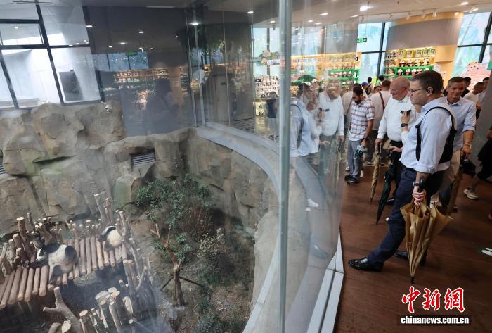 8月7日,部分來蓉參加成都世運會相關(guān)活動的駐華使節(jié)和領(lǐng)館官員來到成都大熊貓繁育研究基地參觀。 中新社記者 王磊 攝