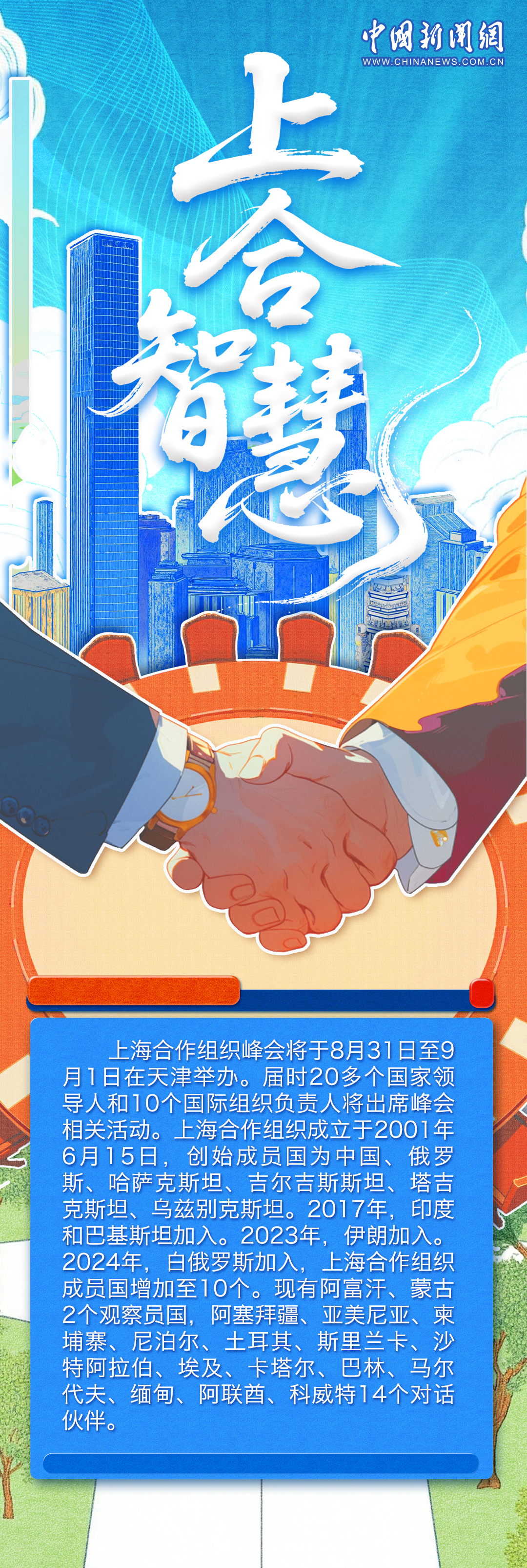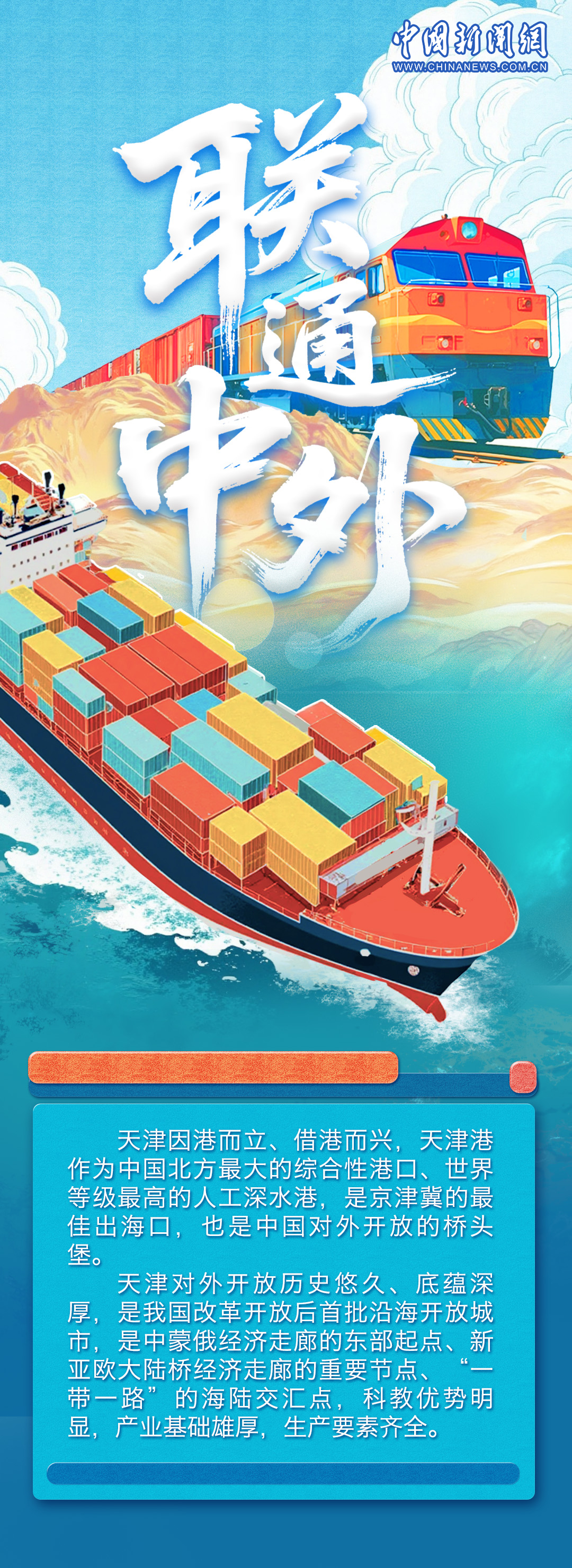 天津文化底蘊厚重,有著悠久的商業(yè)文化和航運文化,作為中國首批沿海開放城市,依港而生、向海而生。上合組織峰會將于8月31日至9月1日在天津舉辦,上合進入“天津時間”,世界期待“上合智慧”。一組海報,帶你領(lǐng)略天津的開放風采與澎湃動能。