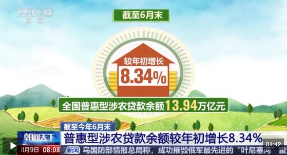 截至6月末,全國普惠型涉農(nóng)貸款余額13.94萬億元,較年初增長8.34%;全國糧食重點領域貸款余額5.1萬億元,較年初增長13.5%。今年1-6月全國新發(fā)放的普惠型涉農(nóng)貸款平均利率同比下降0.61個百分點,繼續(xù)保持下降趨勢。