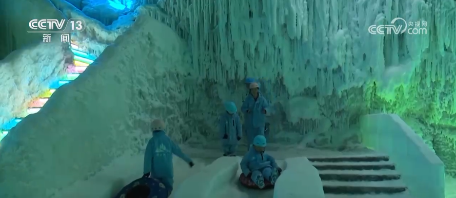 在淮南市焦崗湖畔的“冰簾洞天”景區(qū),游客們仿佛“穿越”到了冬天。1.5公里長(zhǎng)的游玩線(xiàn)路涵蓋了冰上漂流、冰上保齡球等項(xiàng)目,大人、孩子們穿上厚厚的衣服,感受速度與激情。