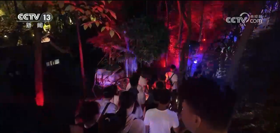 在八公山國(guó)家地質(zhì)公園,不少游客選擇到森林里避暑游玩,特別是到了晚上,景區(qū)通過(guò)光影秀打造了夜間森林的游覽路線(xiàn),還發(fā)放了15000余張兒童免費(fèi)體驗(yàn)券,吸引游客到來(lái)。