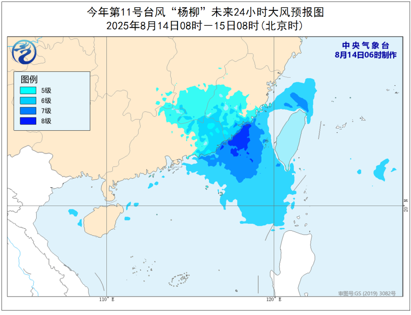 中央氣象臺8月14日06時發(fā)布臺風(fēng)藍色預(yù)警: