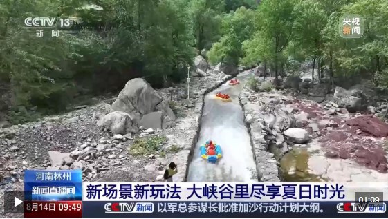 在河南林州太行大峽谷,旅游業(yè)態(tài)持續(xù)“上新”,這是升級后的峽谷漂流,沿途中增加了“水炮”“喊麥”等環(huán)節(jié),增強了游客的互動感。